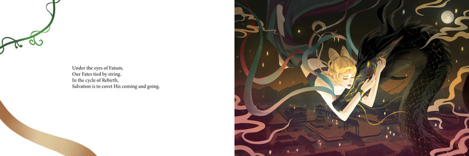 Luciella, a divine being of light whose fate is tied to the love of her eternal life, embarks on a tragic journey to find her love's new reincarnations in pursuit of another chance of happiness by his side again. This zine explores her journey through time and her time with him in his new forms.